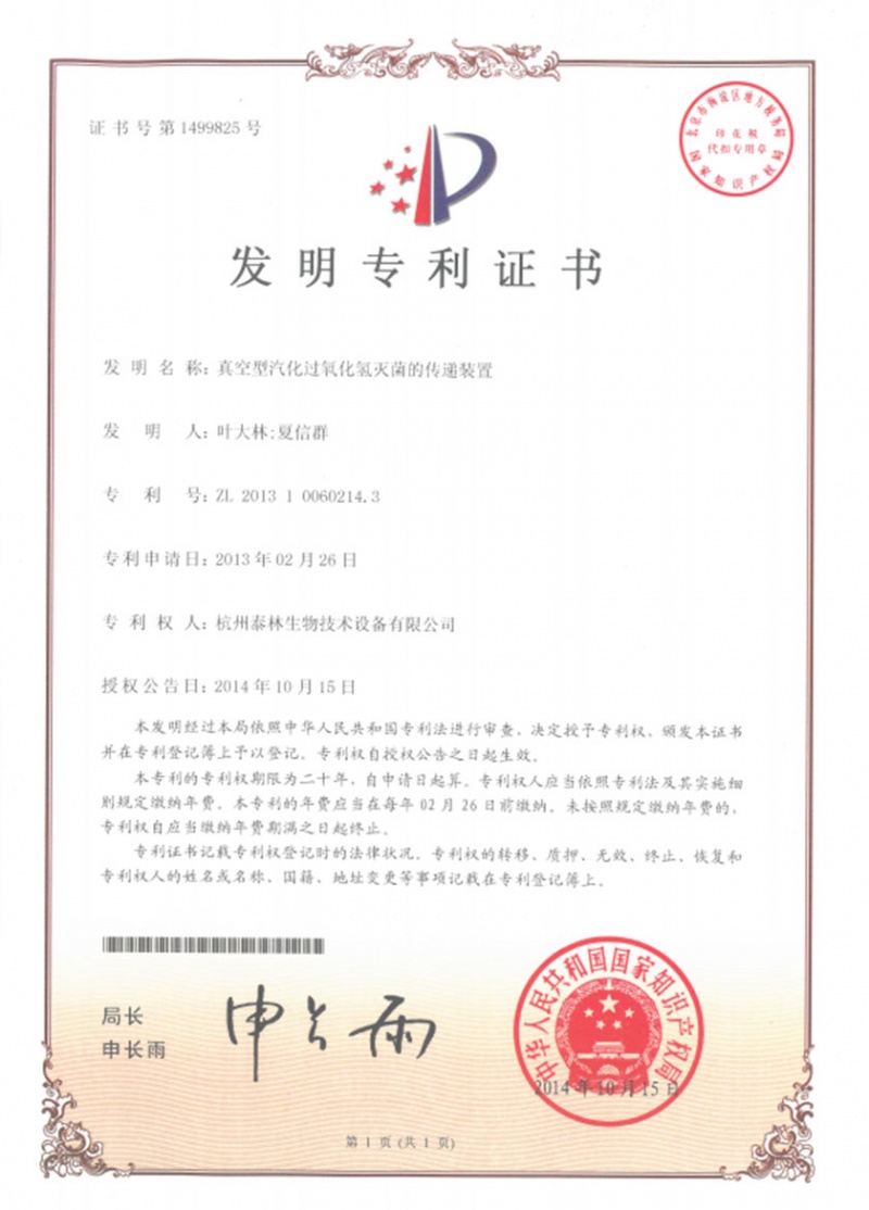 Õæ¿ÕÐÍÆû»¯¹ýÑõ»¯ÇâÃð¾úµÄת´ï×°ÖÃZL 2013 1 0060214.3 -