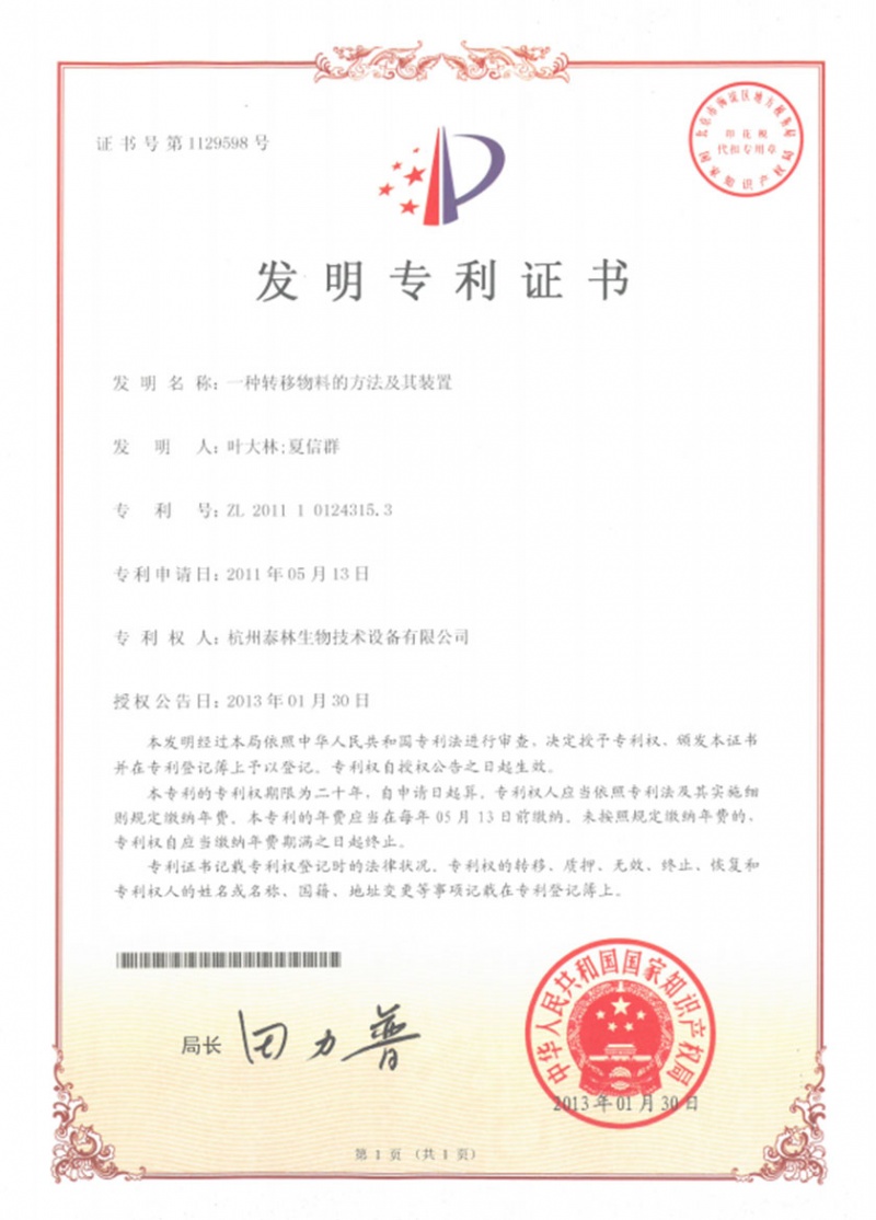 Ò»ÖÖ×ªÒÆÎïÁϵÄÒªÁì¼°Æä×°ÖÃZL.2011 1 0124315.3 -