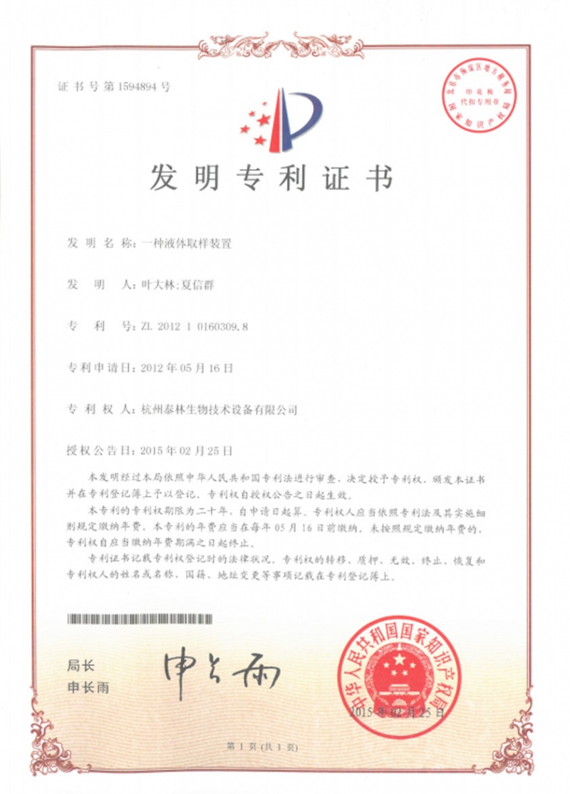 Ò»ÖÖÒºÌåÈ¡Ñù×°ÖÃZL 2012 1 0160309.8 -