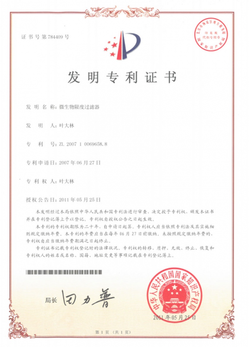 ΢ÉúÎïÏ޶ȹýÂËÆ÷ZL 2007 1 0069658.8 -
